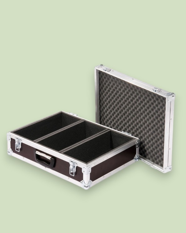 Опціонально такий кейс може бути виконаний з 4,6,9,12 мм матеріалу, ламінованої фанери, фанери з покриттям ПВХ, полегшеного пластику або композитного алюмінію в будь-якому необхідному для вас кольорі.